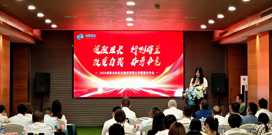 2025年7月11日,?成都法和藥業(yè)集團(tuán)有限公司半年銷(xiāo)售會(huì)議在航辰國(guó)際酒店拉開(kāi)帷幕。趙睿董事長(zhǎng)率集團(tuán)高管、業(yè)務(wù)骨干,攜手合作伙伴齊聚一堂,以“道阻且長(zhǎng),行則將至;改變自我,奮勇?tīng)?zhēng)先”為主題,全面復(fù)盤(pán)上半年業(yè)務(wù)進(jìn)展,深度謀劃下半年戰(zhàn)略目標(biāo),點(diǎn)燃全員斗志,為奮力沖刺全年任務(wù)錨定方向,凝聚共識(shí)。